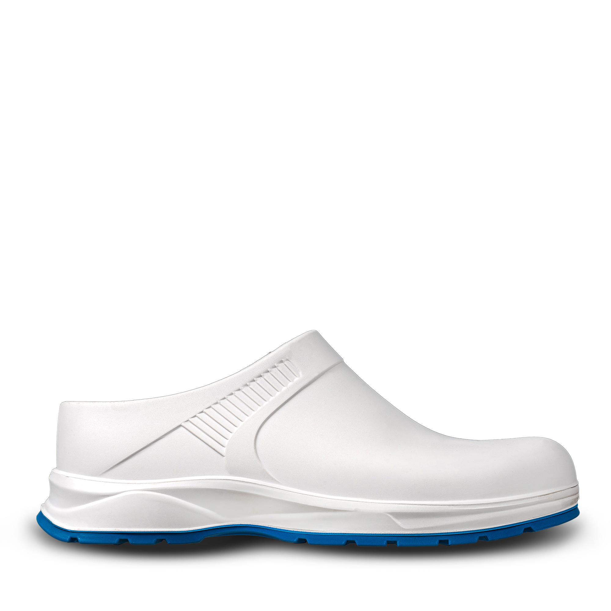 The specially designed cleat pattern on the sole ejects emergency room residue that accumulates while walking, making them super easy to clean. The polyurethane outsole can withstand temperatures up to 90°C.