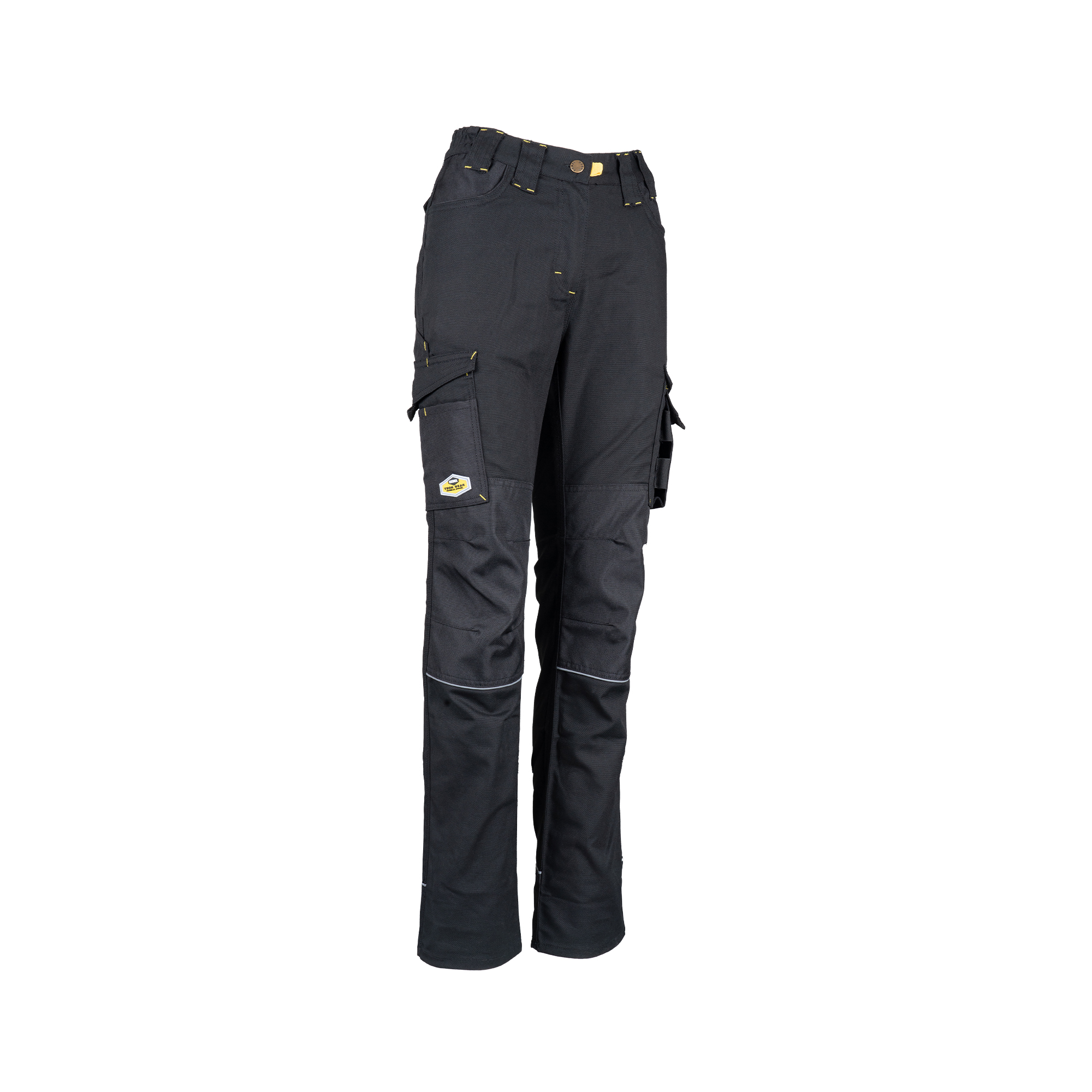 The Rebel Ladies Tech Gear Trousers are made from high quality polycotton canvas in a range of sizes from 26 to 46 with a modern and contoured ladies fit. The trousers have triple stitched seams for extra strength and durability. Seven multifunctional utility pockets and tool loops provide the wearer with versatile work options. The 300d Oxford polyester fabric overlays on high wear areas including the knees and ankles provide additional protection and durability.
