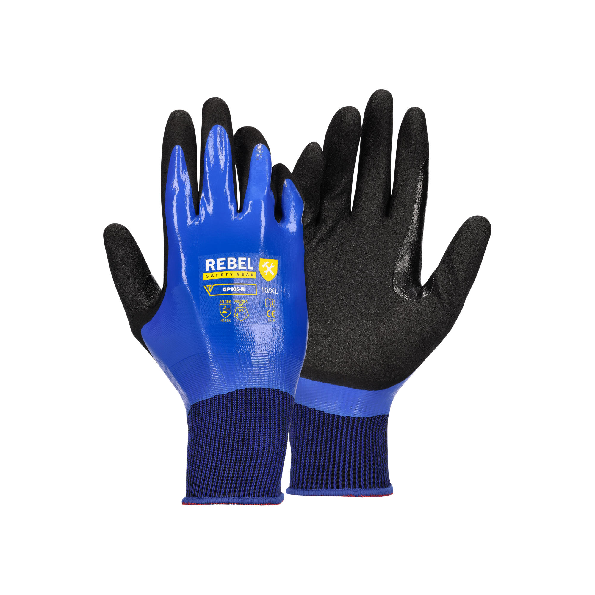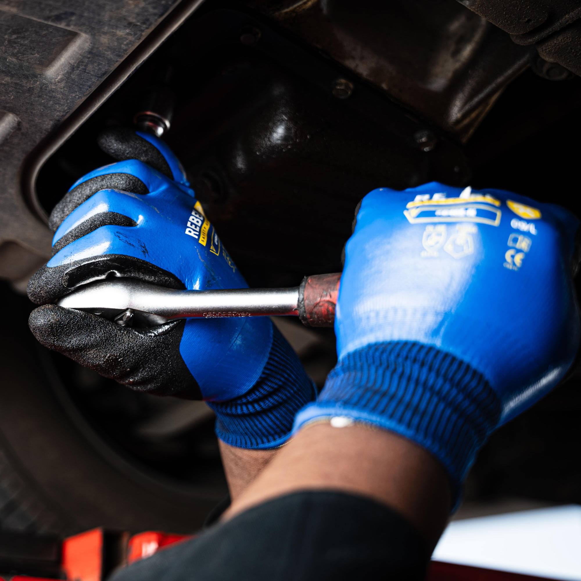 The REBEL VERSA PLUS high-performance glove, featuring a sandy nitrile coating and a double-dipped full dip finish, is designed to provide superior grip and durability, even in oily and wet conditions. The 15-gauge nylon liner ensures comfort and flexibility, while the full dip offers excellent resistance to water and oil, making it ideal for demanding environments. Touch screen compatibility allows seamless use with devices, and reinforced thumb and index finger saddles add extra protection in high-wear areas. With excellent abrasion performance and breathable nitrile material, this Oeko-Tex certified glove is not only functional but also sustainable for environmentally conscious industries.
